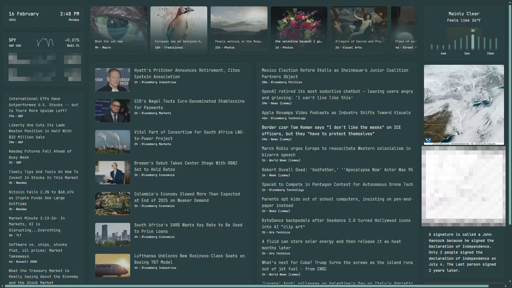 I checked out a few options for this and settled on using Glance which takes a YAML as input, transforms it into a dashboard, and serves it. Its nice because it’s a single executable. I have this set to run on startup on an old RPi 2, which also runs a fullscreen Chrome session pointed to localhost for display on an old monitor I had sitting around. The RPi 2 is able to run glance comfortably, it’s a little slow to run Chrome but that’s OK, this is not interactive. The monitor is on a remote so I can flick it on/off from my desk. I also made a “homescreen webapp” on my phone so I can jump to the same dashboard and click into any news that is interesting.