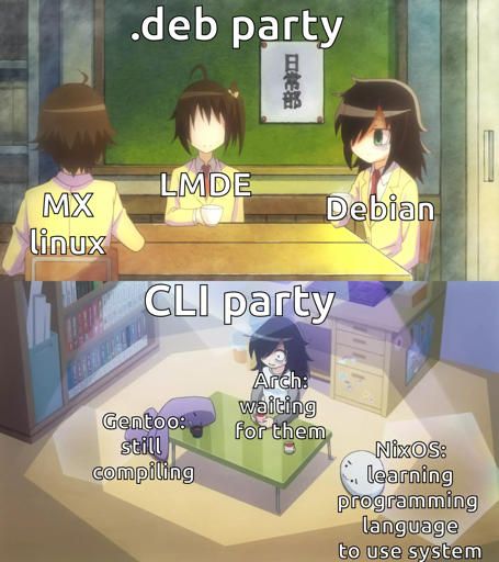Waffelson@lemmy.world to linuxmemes@lemmy.world · 2 years agoIf we had partieslemmy.worldimagemessage-square6linkfedilinkarrow-up10arrow-down10