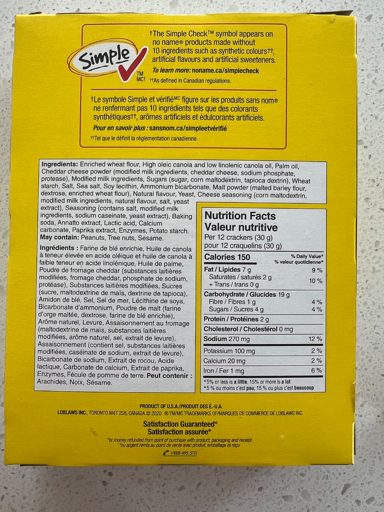 Cheese sandwich crackers for reference here. Product of USA.